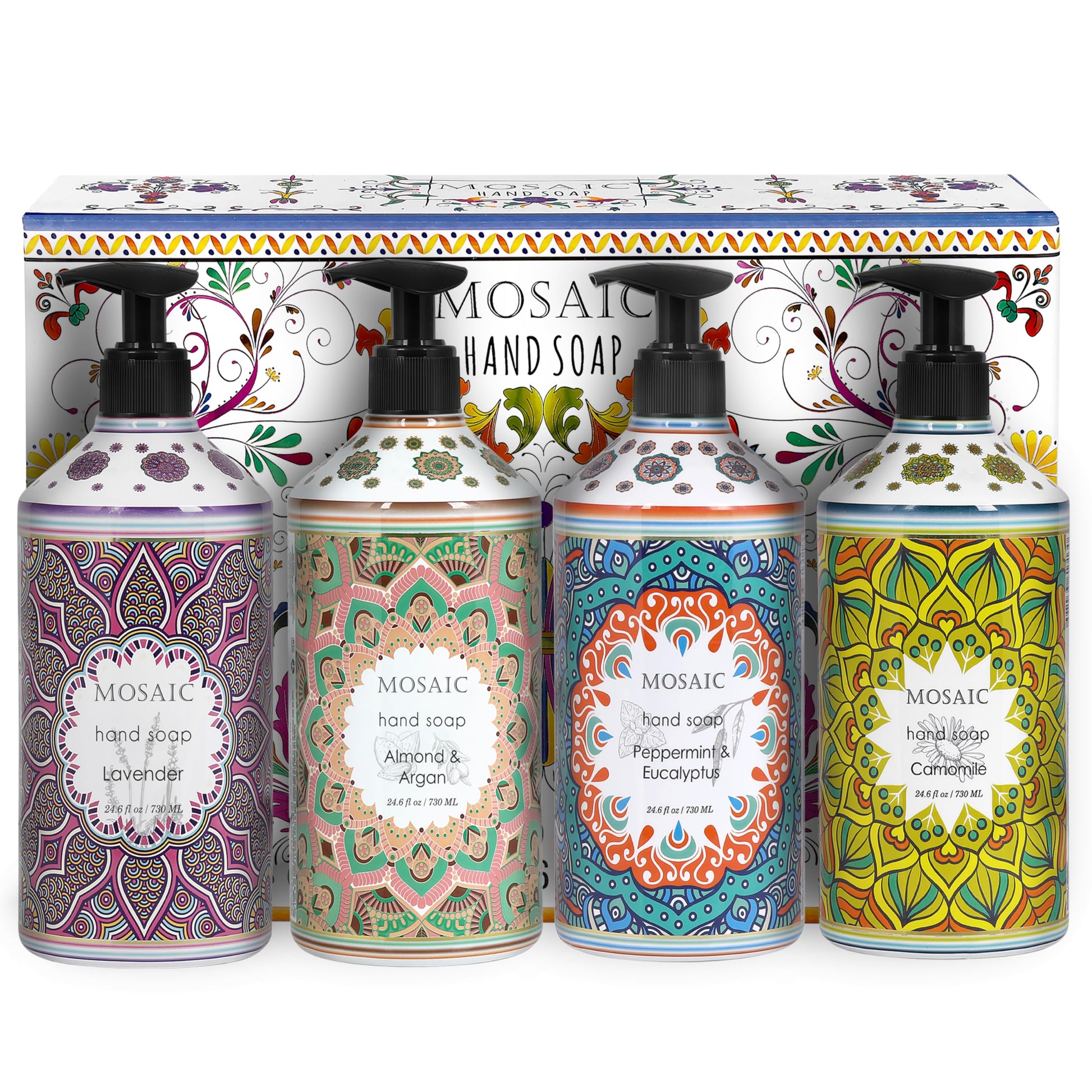 - LARGE HAND SOAP REFILLS �?Mosaic luxury hand soap can be used as hand soap refills, liquid soap refills, kitchen soap dispenser set, which can also be used as a hand soap dispenser. Our hand soap gift set contains four (4) individual scents each in a large 24.6 fl oz (730 ml)
