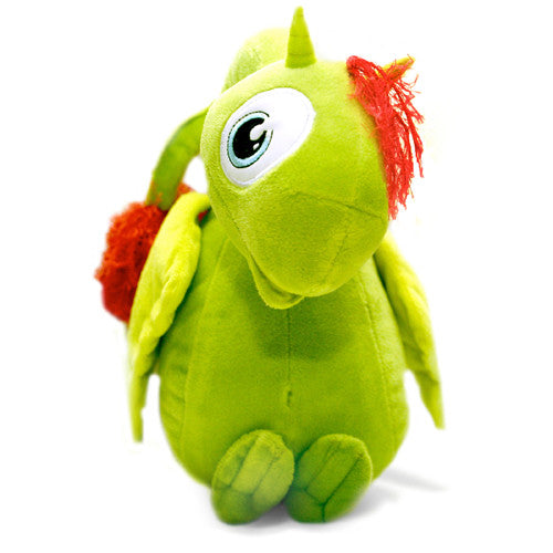 Need a hug? So does Nola, the first character of the WorryWoo series. The heroine of The Lonely Little Monster is a twelve inch green plush who sports a playful tail and mane. With large shimmering eyes and an adorable belly button she's everyone's delight! Her handle-like tail makes her an irresistible tote while her wide-eyed gaze makes for an immediate friend.