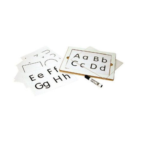 Develop early writing skills by tracing alphabet letters and geometric shapes. Pattern cards are held in place under the see-through tracing board, so the child can practice curves, angles, letters and numbers. Holder may also be used to trace over workbook games and exercises. Dry erase marker not included.