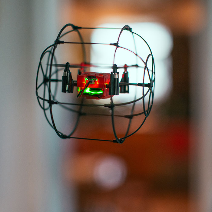 All terrains welcome with this advanced quadcopter in a rolling protective cage. This quadcopter is packed with features and maneuverability that will impress. Turbo Runner climbs up walls and ceilings, and takes a beating and bounces back!